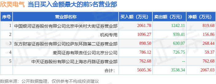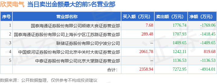 证券之星消息配资查询,沪深交易所2025年7月9日公布的交易公开信息显示,欣灵电气(301388)因日换手率达到30%的前5只证券登上龙虎榜。此次是近5个交易日内第4次上榜。
